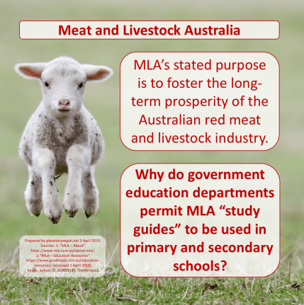 At the time of writing, a primary level “study guide” released by MLA in 2010, but since withdrawn from the organisation’s website, was still available on the “KE Teacher” website managed by Kimberlin Education, based in Sydney. This author highlighted serious flaws in that document, “Cattle and the environment“, in a 2015 article.
