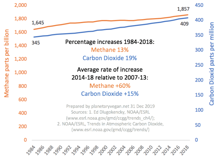 [13] Mikaloff Fletcher, S.E., and Schaefer, H., “Rising methane: A new climate challenge”, Science 07 Jun 2019: Vol. 364, Issue 6444, pp. 932-933, DOI: 10.1126/science.aax1828, citing Wolf, J., Asrar, G.R., West, T.O., Carbon Balance Manag. 12, 16 (2017) in respect of ruminant livestock emissions. https://science.sciencemag.org/content/364/6444/932