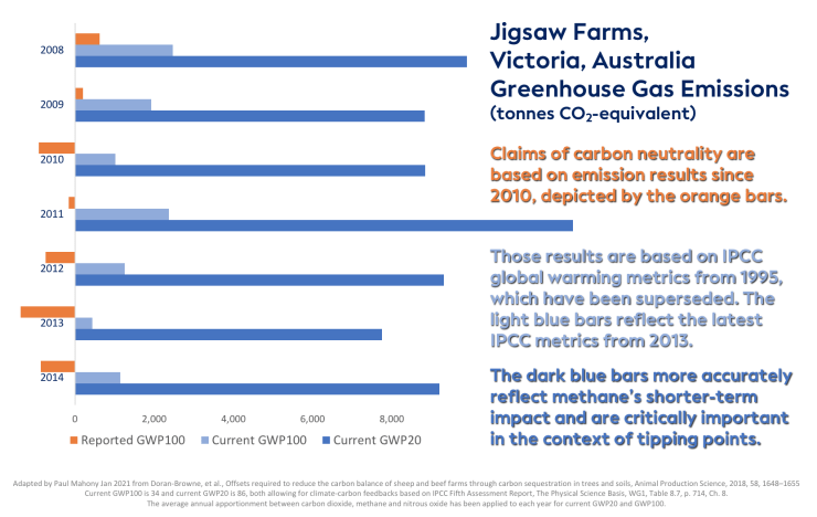 They are relevant to claims of carbon neutrality by a prominent Australian sheep, cattle and agroforestry business.